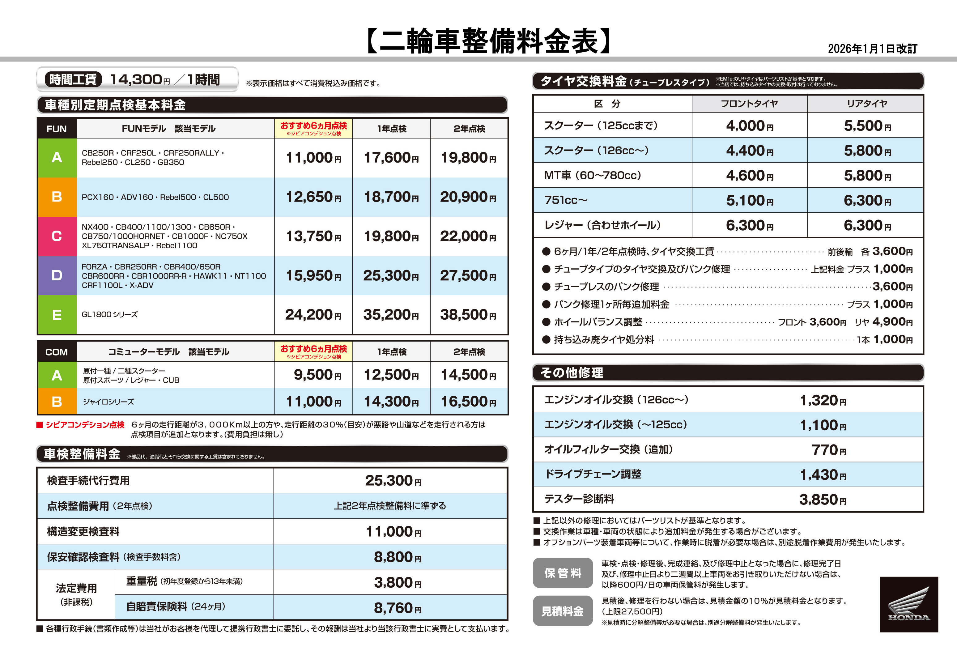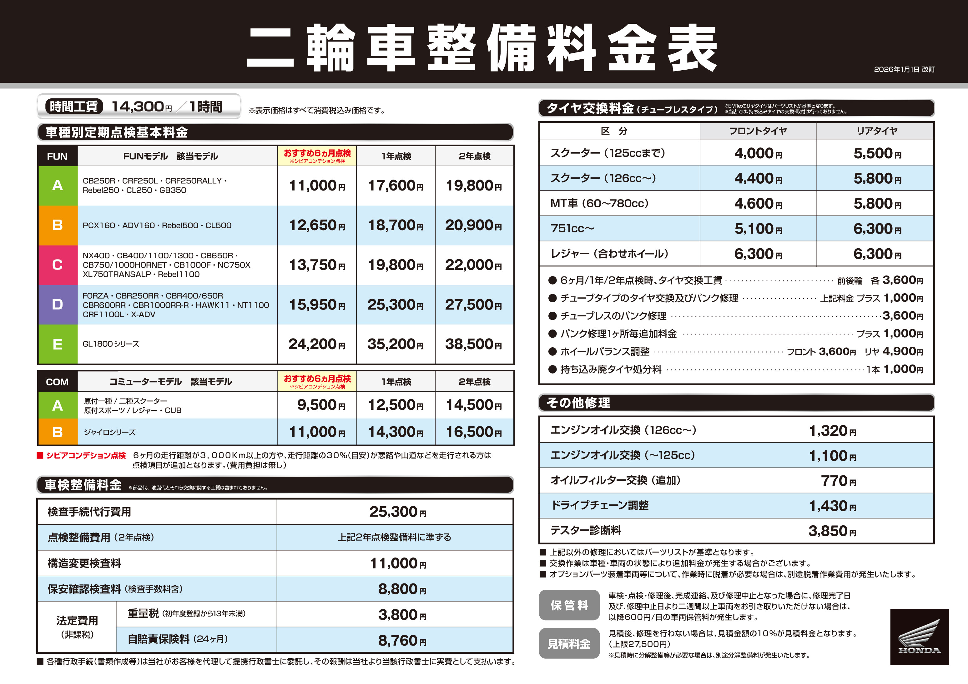 大切なオートバイの性能と安全性を維持するためにも、こまめな点検整備をお奨めします。